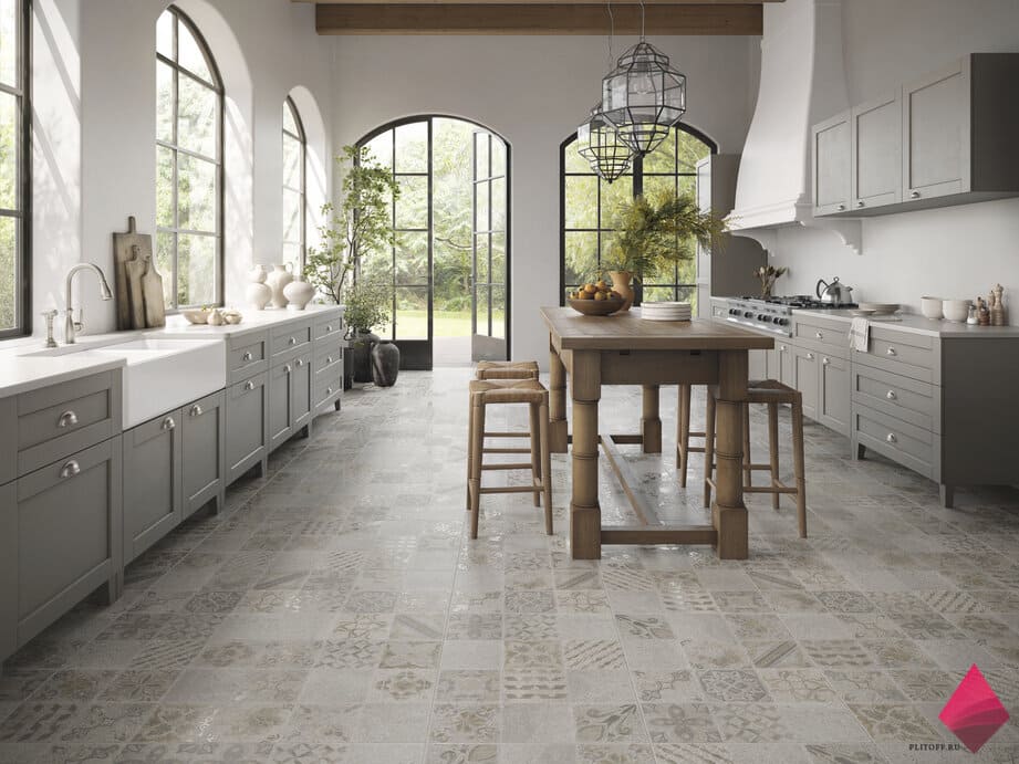 Плитка керамогранит с орнаментом сделает интерьер спокойным и уютным.