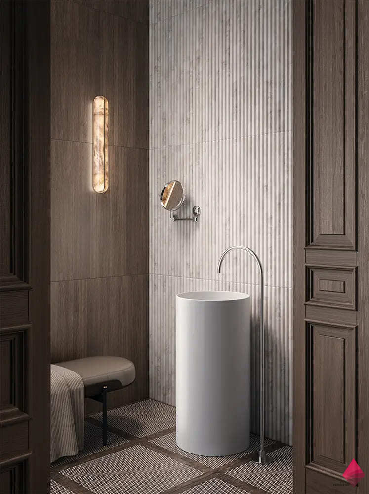 Современная интерпретация пространства, в котором отделка становится функциональной, а форма приобретает изящное, современное выражение.